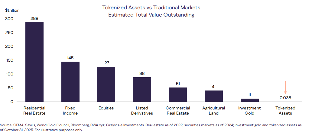 Крупнейшие американские банки — Morgan Stanley, Bank of America, Wells Fargo — уже начали предлагать клиентам доступ к криптовалютным продуктам. В 2026 году этот процесс должен ускориться: wirehouses получат окончательное регуляторное одобрение для полноценной дистрибуции. По оценкам Grayscale, менее 0,5% капитала под управлением финансовых советников в США аллоцировано в криптовалюты — потенциал для роста огромен.