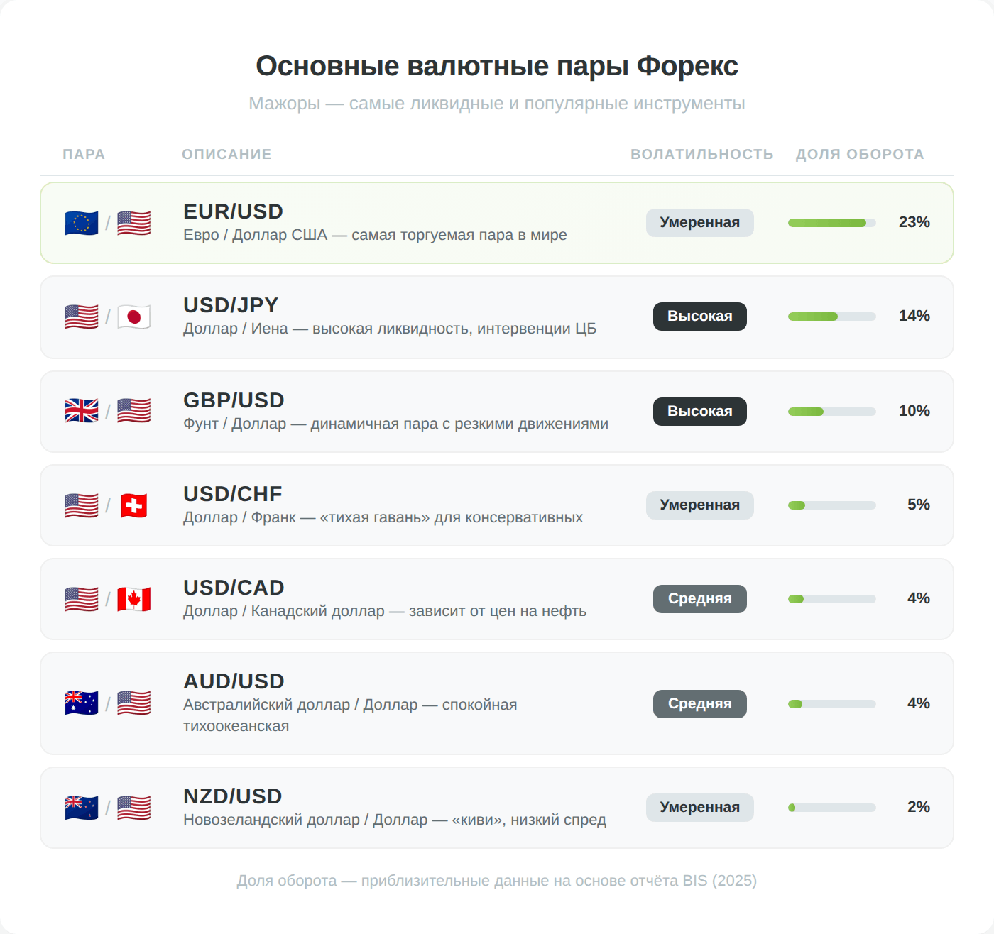 - USD/JPY – иена интересна высокой ликвидностью и активным участием Банка Японии в валютных интервенциях, что создаёт волатильность и торговые возможности.