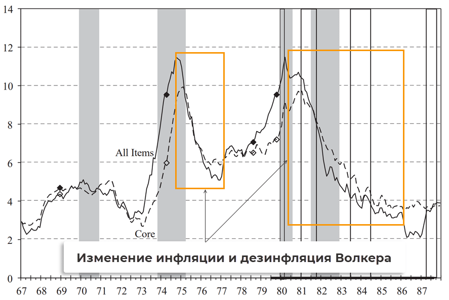 Свежий пример дезинфляции – 2022-2024 гг. Из-за пандемии коронавируса правительства многих стран использовали тактику вертолетных денег, буквально раздавая их населению. Подход сработал – он помог людям пережить сложные времена и безработицу. Но рост денежной массы в сочетании с нарушением цепочек поставок привёл к всплеску инфляции: в США CPI достиг пика 9,1% в июне 2022 года.