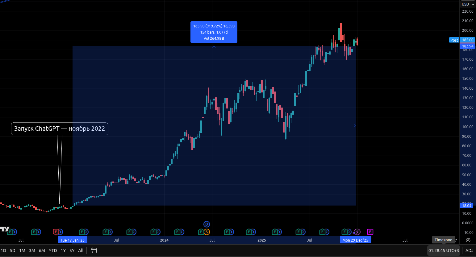 Впрочем, это не гарантия: даже прибыльные компании могут быть переоценены. Nvidia торгуется с форвардным P/E около 35-40x, что предполагает продолжение взрывного роста прибыли — любое замедление чревато коррекцией.