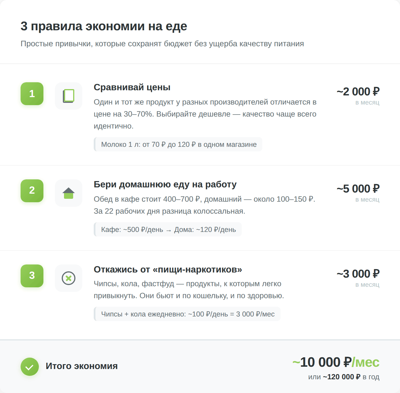 Сигареты, алкоголь, фастфуд — это не только вредно для здоровья, но и бьет по карману. Не верите? Посчитайте, сколько в месяц вы тратите на эти «радости жизни». Уверен, сумма удивит.