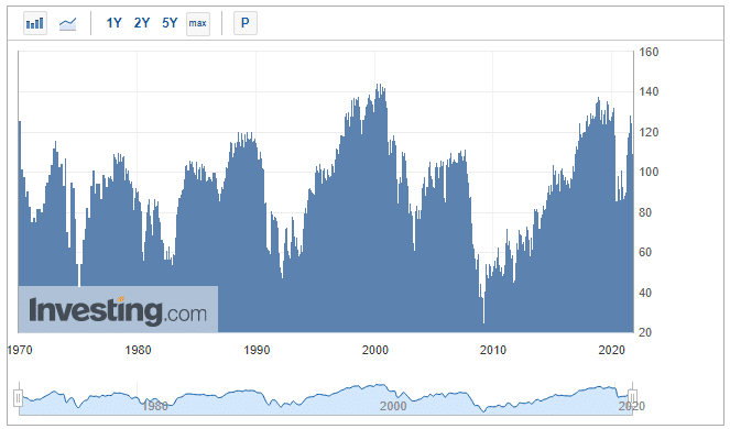 На истории хорошо прослеживается связь между потребительским доверием и экономическими кризисами. На соответствующем графике для США видно, что доверие потребителей резко падало при крахе доткомов, после мирового финансового кризиса конца нулевых, после объявления пандемии коронавируса.