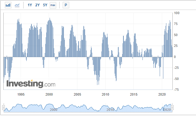 Этот показатель не характеризует производственный сектор или объемы торговли. Индекс экономических настроений – это скорее оценка состояния экономики на основе мнения институциональных инвесторов.