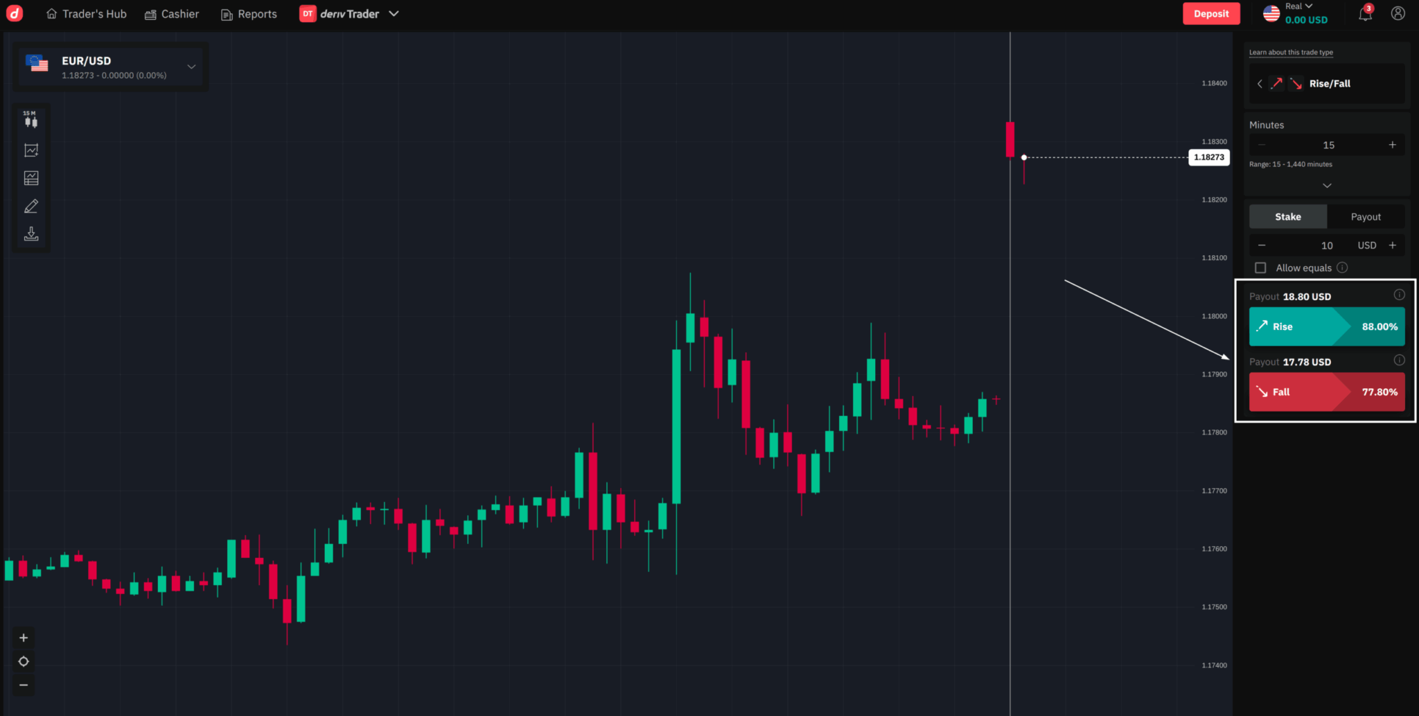 Выплаты (payouts) — это, пожалуй, ключевой параметр торговых условий для трейдера бинарных опционов, поскольку именно они определяют математическое ожидание вашей торговли. На Deriv максимальная заявленная выплата по отдельным контрактам может превышать 200%. Однако важно понимать, что это — исключение, а не правило.