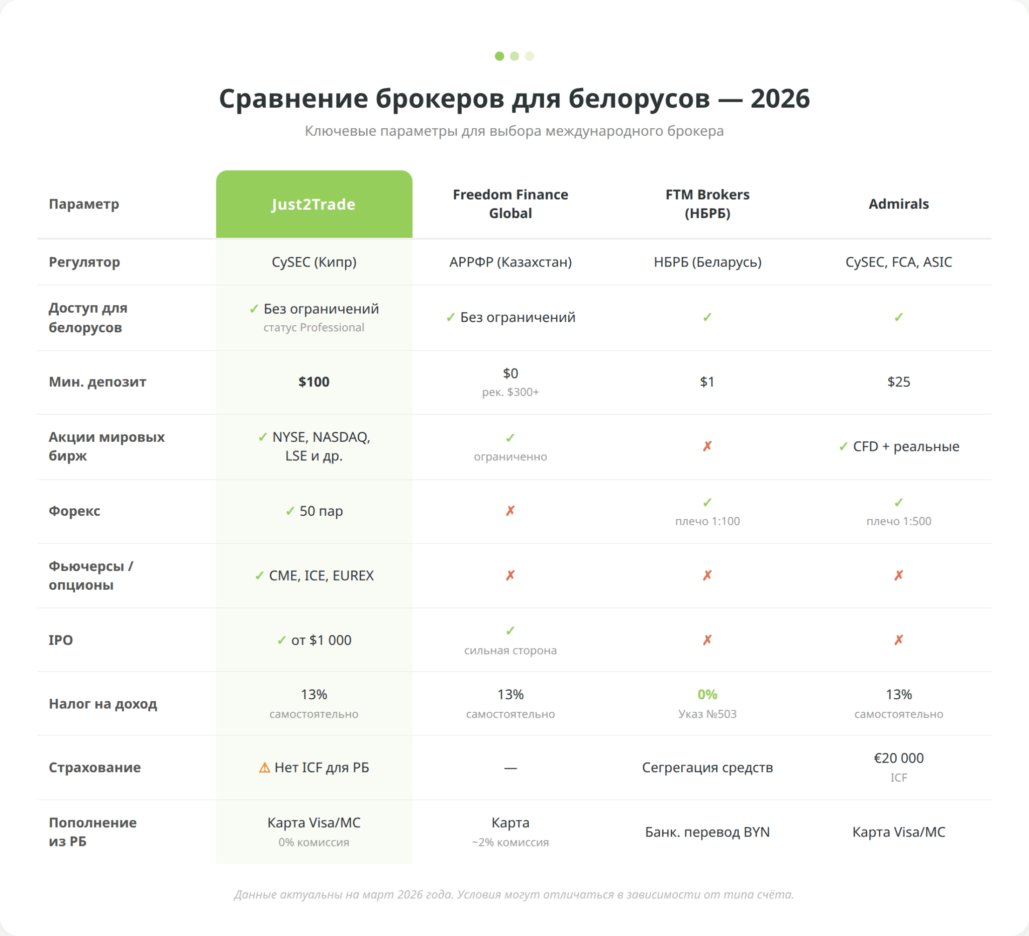 Сравнительная таблица: Just2Trade vs конкуренты для белорусов