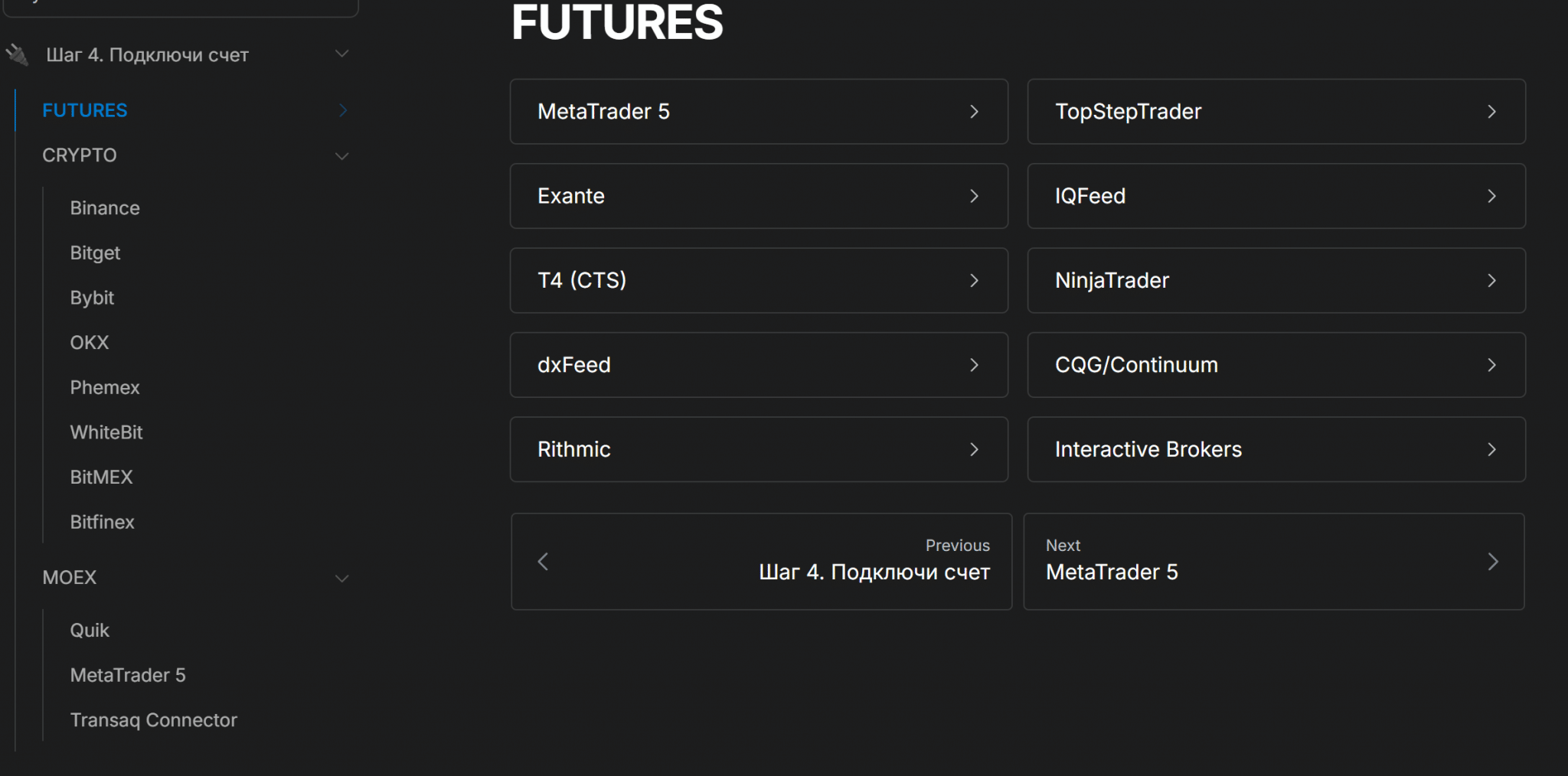 - Терминал полностью переведен на несколько языков, включая русский. Это касается и самой платформы, и сайта, и обучающих материалов