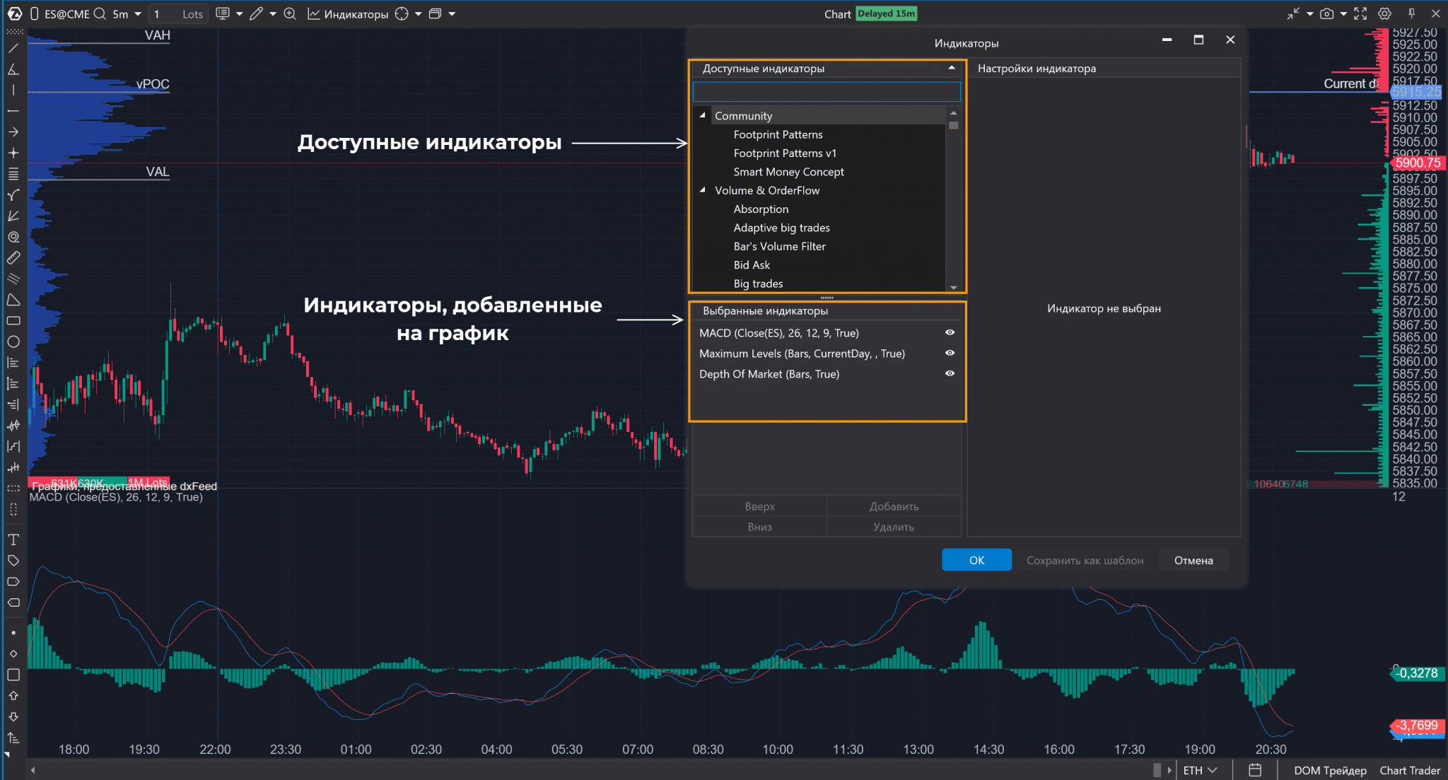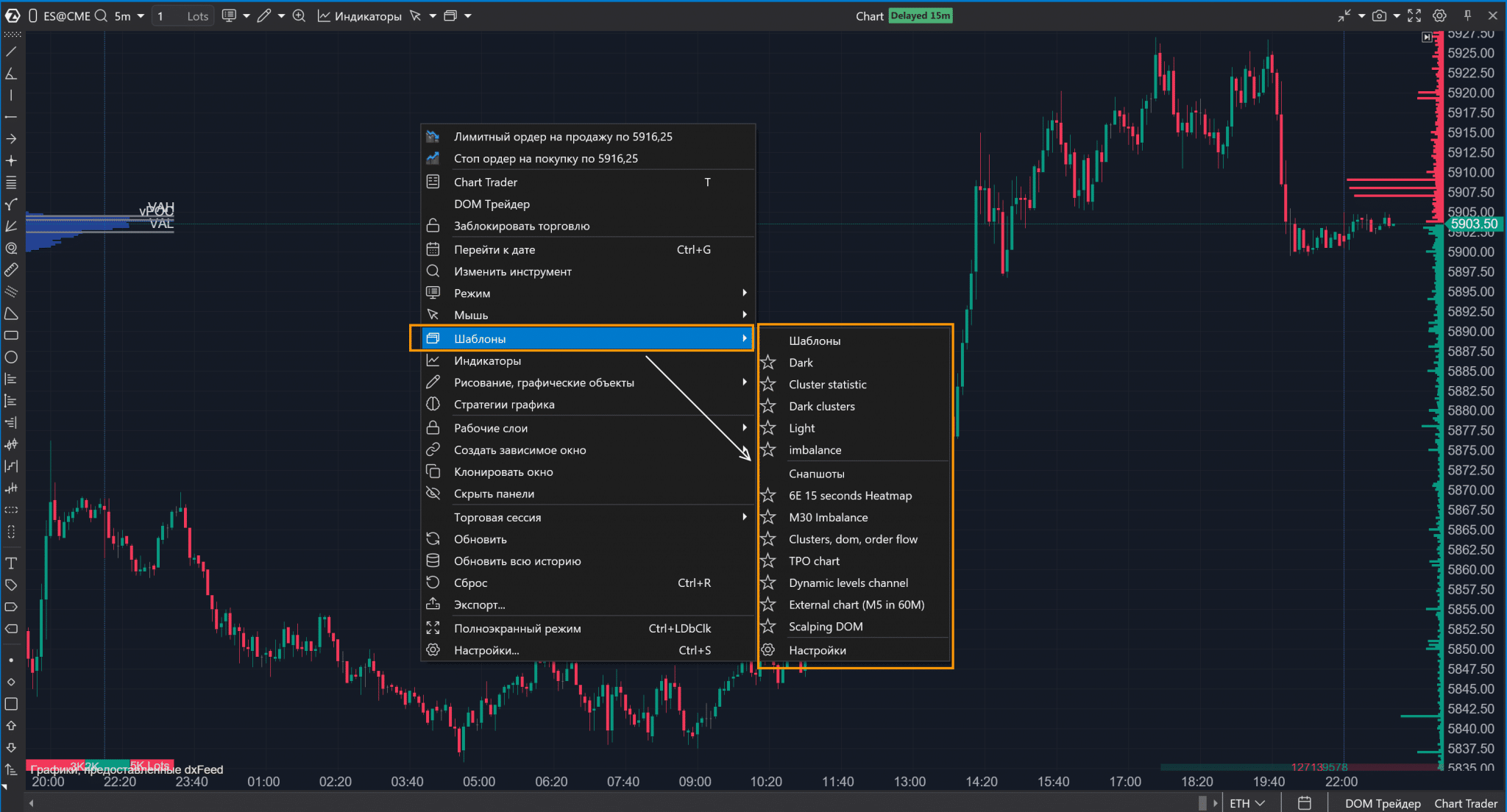 В этом разделе остановимся на том, с чем гарантированно столкнется каждый трейдер. Помимо работы с графиком, добавлением индикаторов разберем и настройку графика для кластерного анализа.