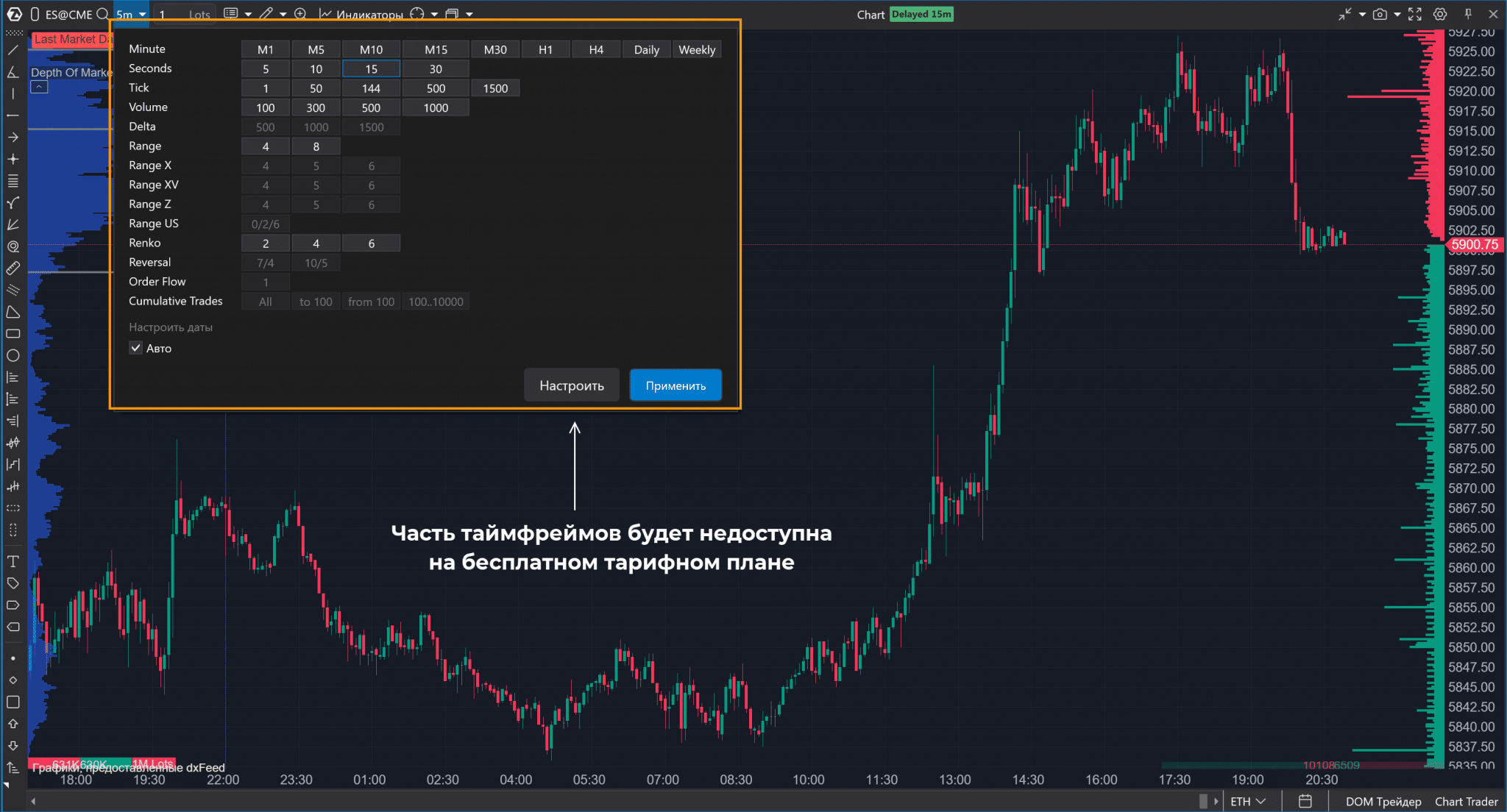 - Использовать разные таймфреймы. Нестандартные временные интервалы недоступны на бесплатном тарифном плане.