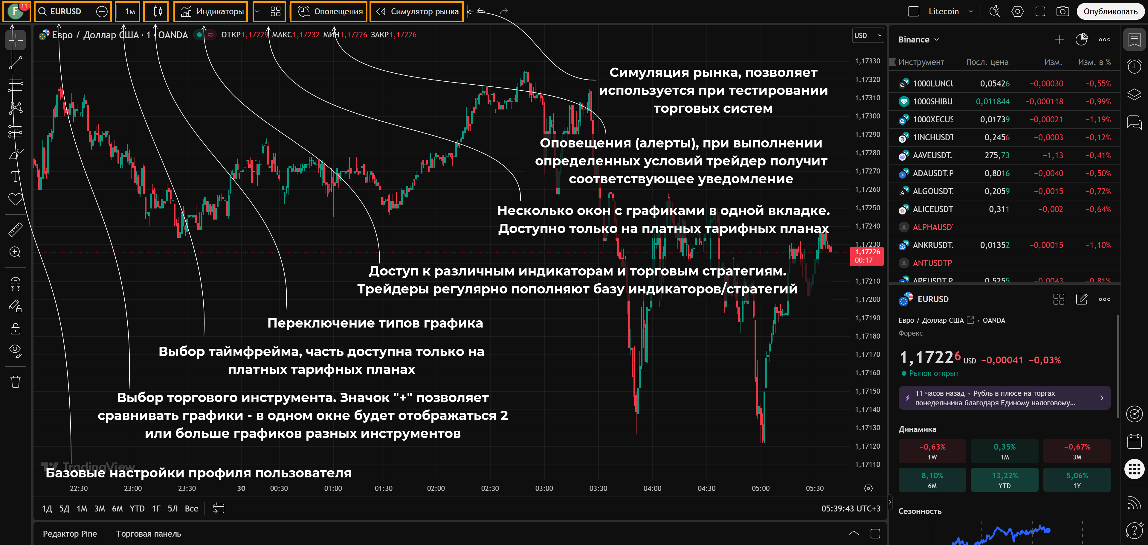 Основные возможности Tradingview