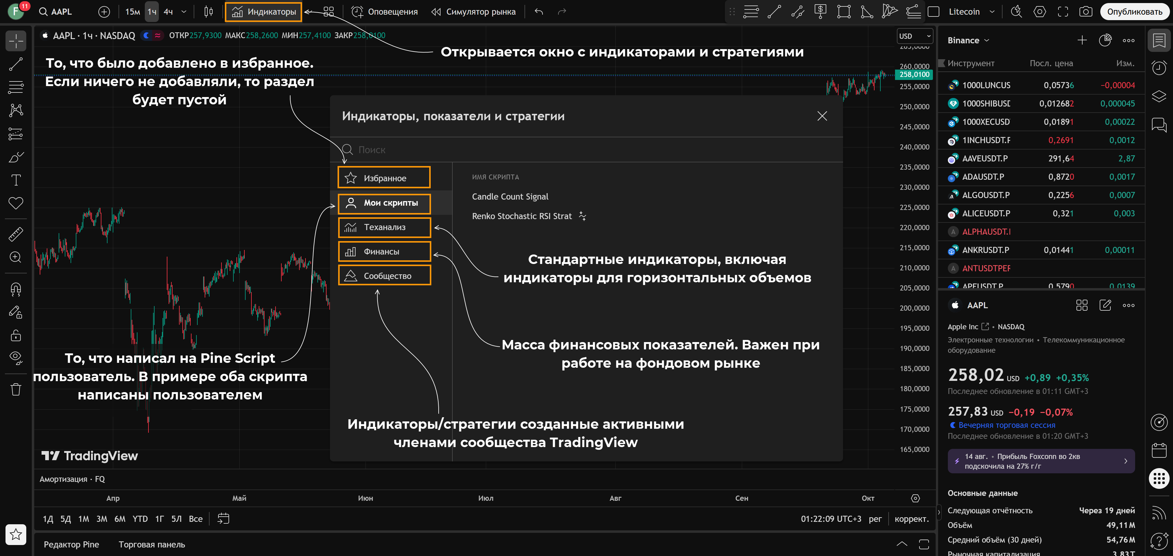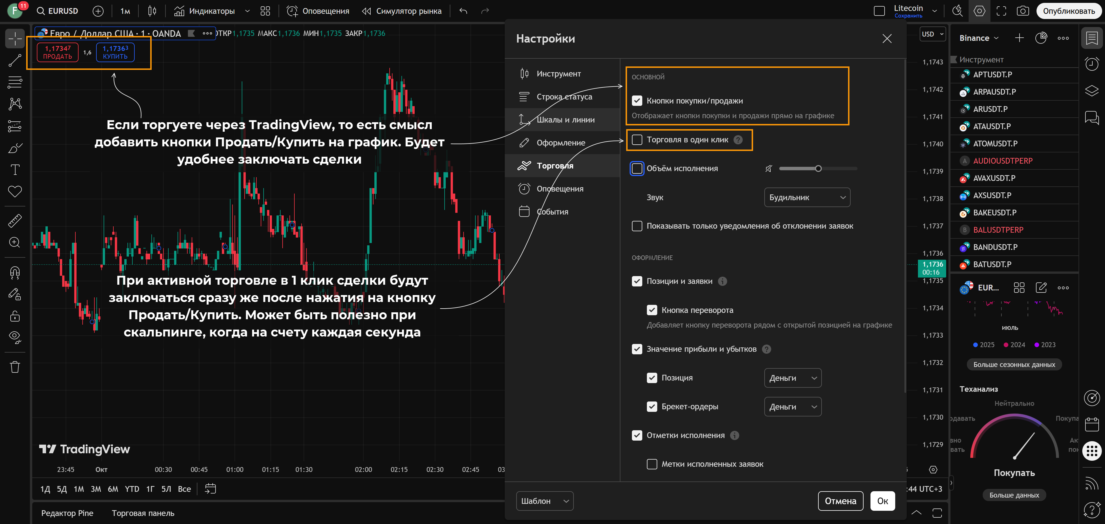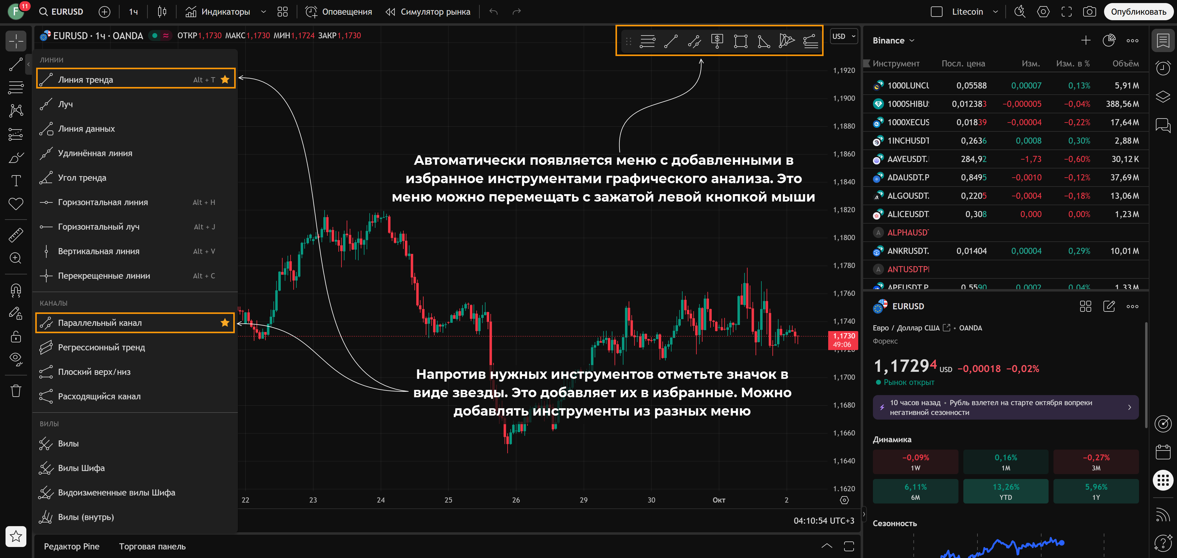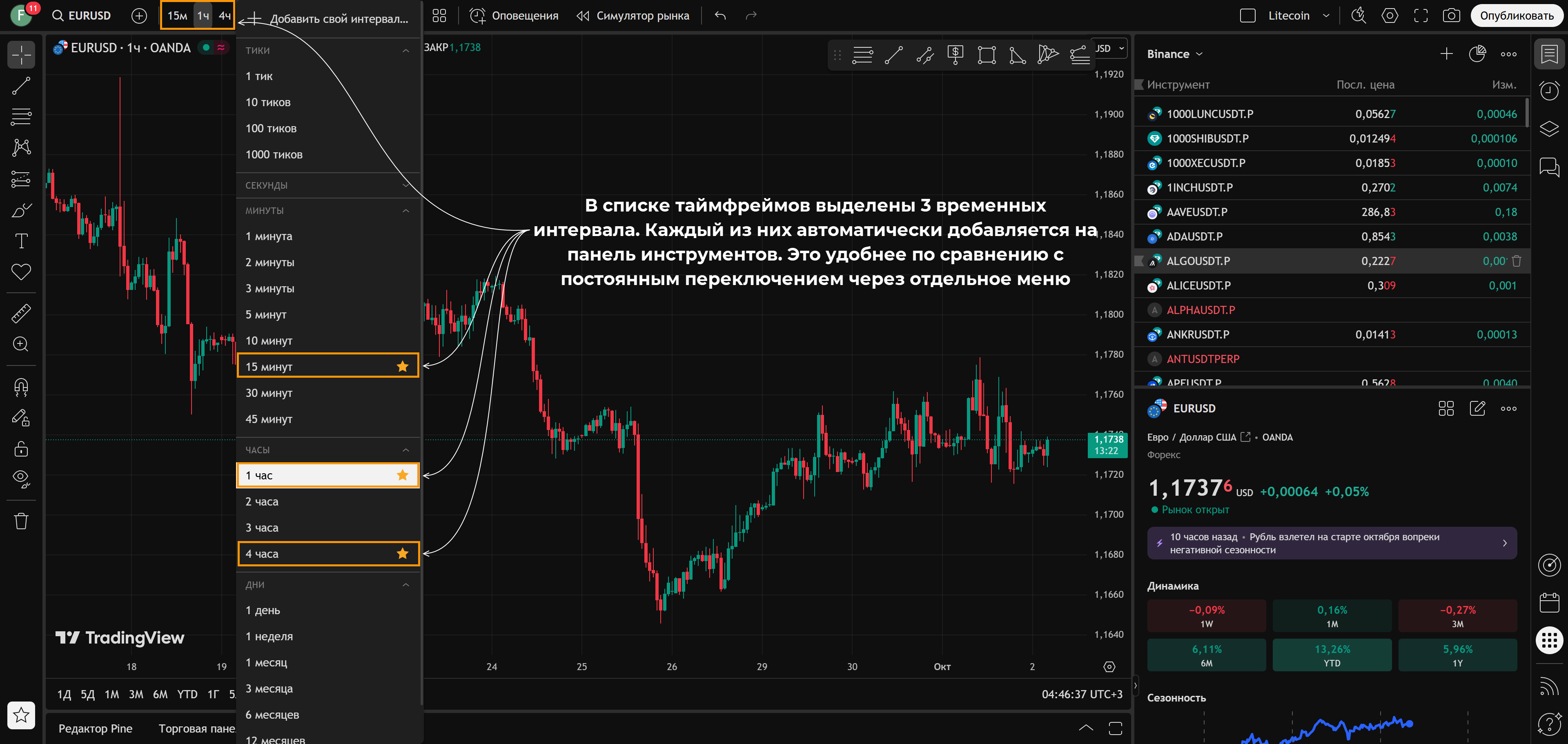Ниже – небольшое пояснение как пользоваться TradingView, своего рода мини-инструкция: