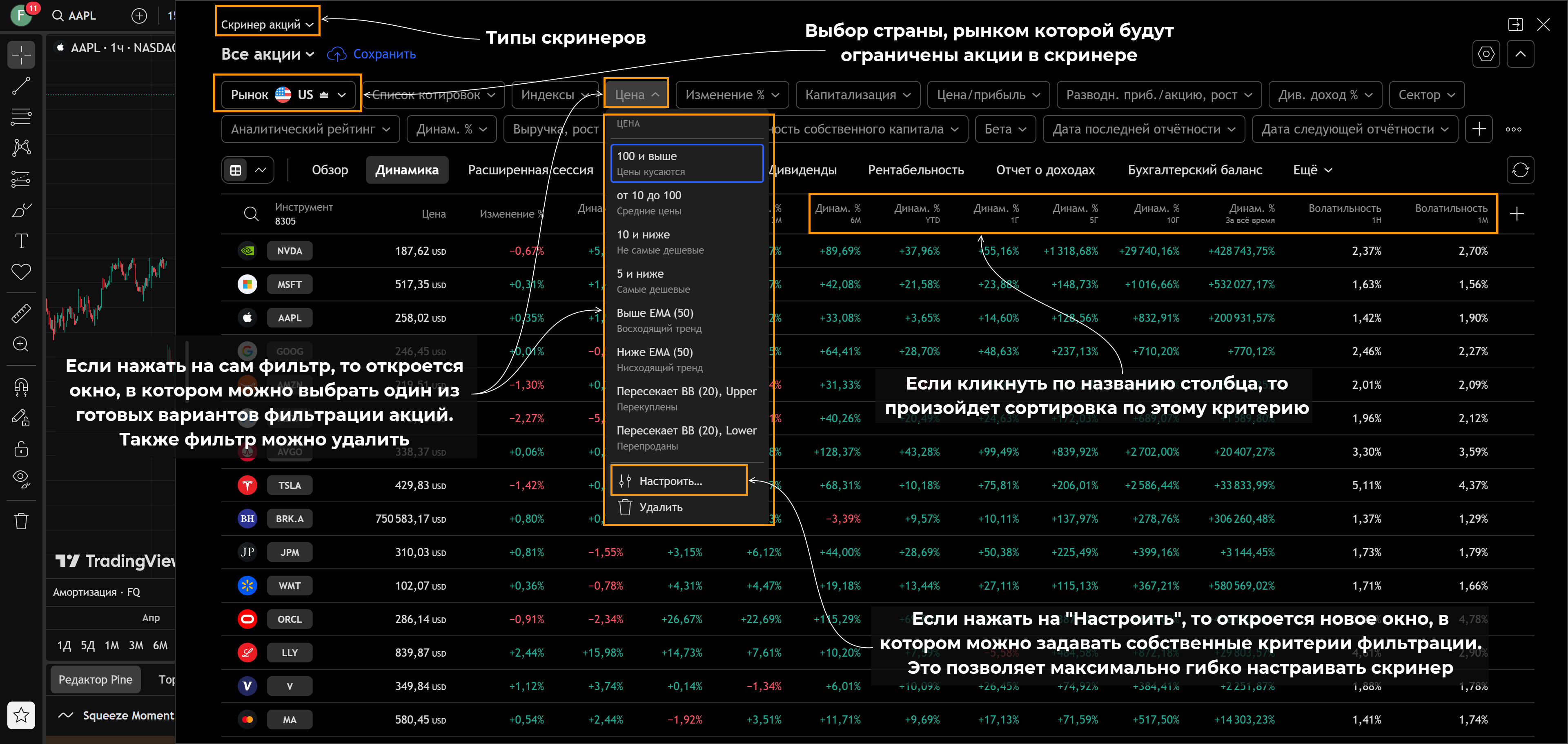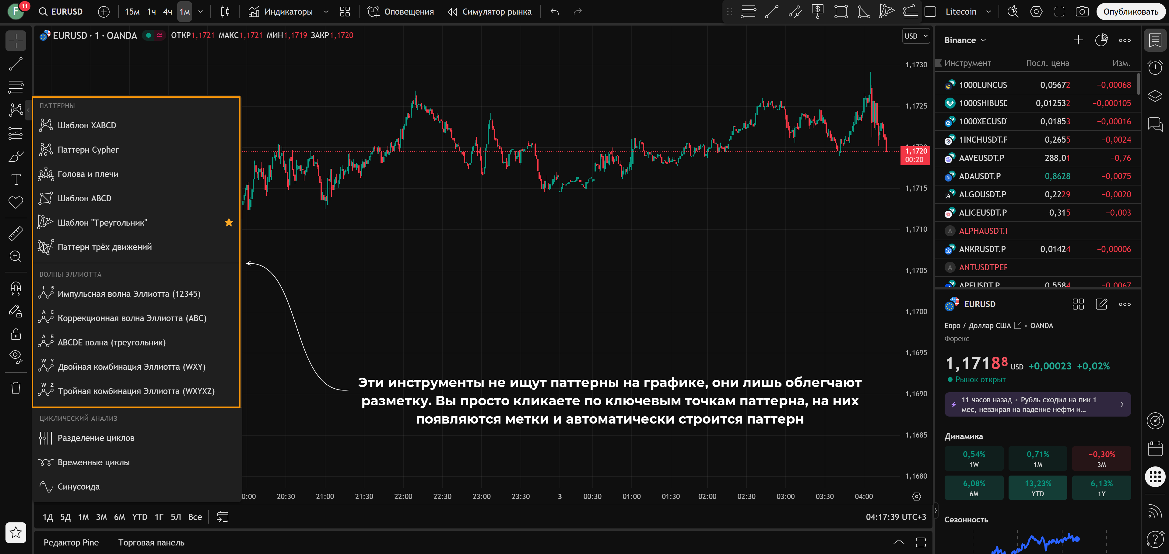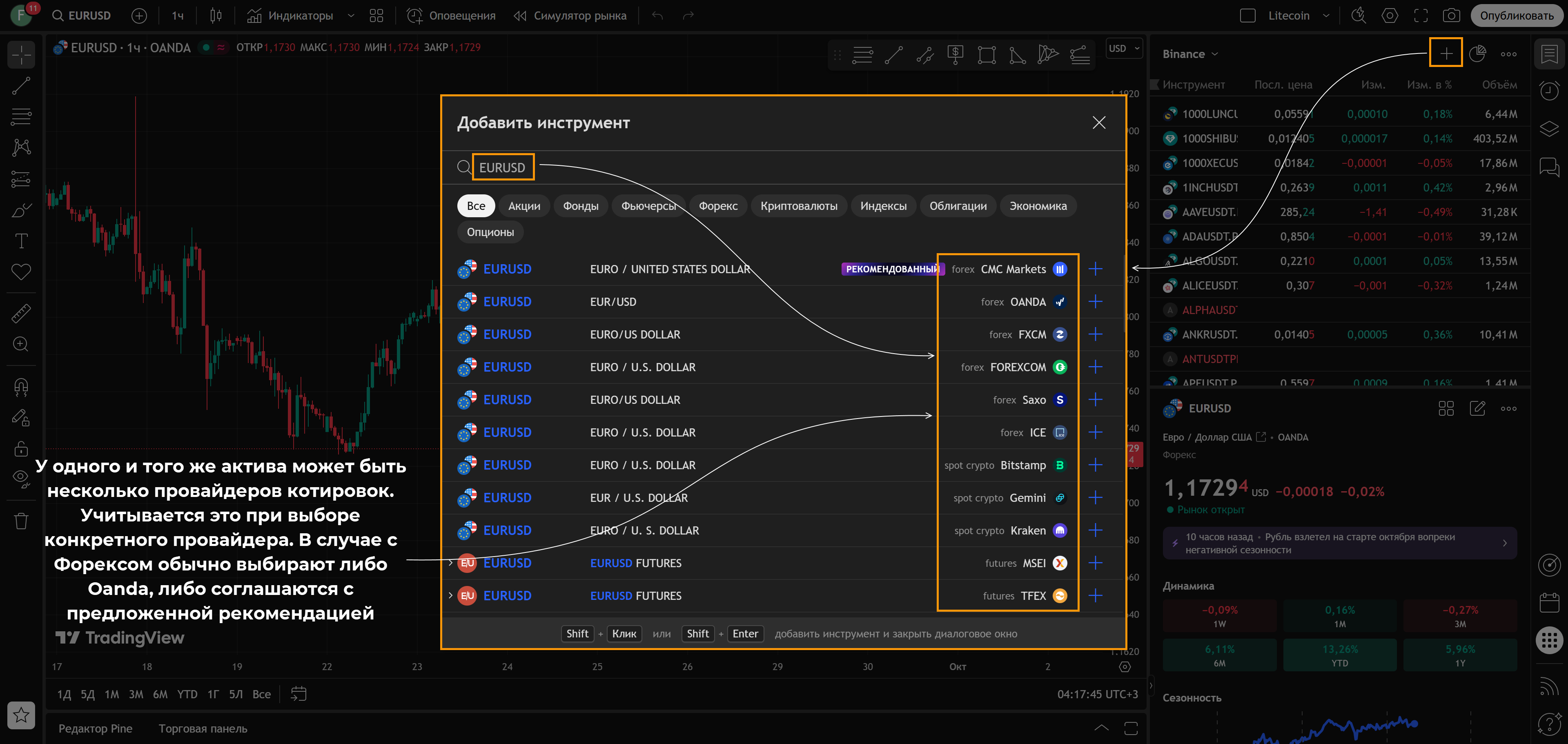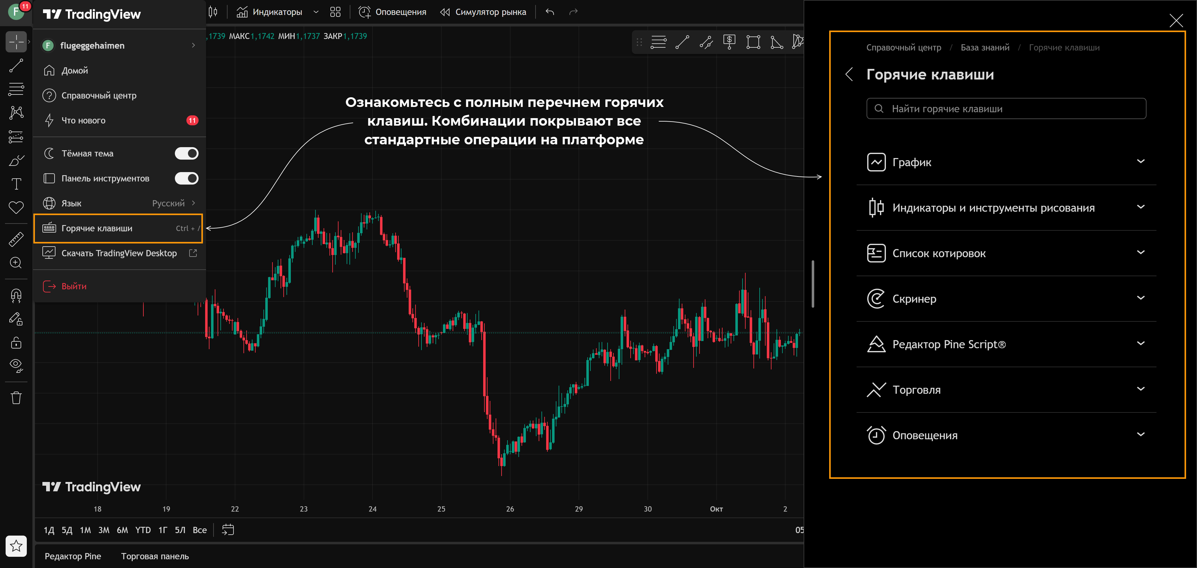 Ниже – небольшое пояснение как пользоваться TradingView, своего рода мини-инструкция: