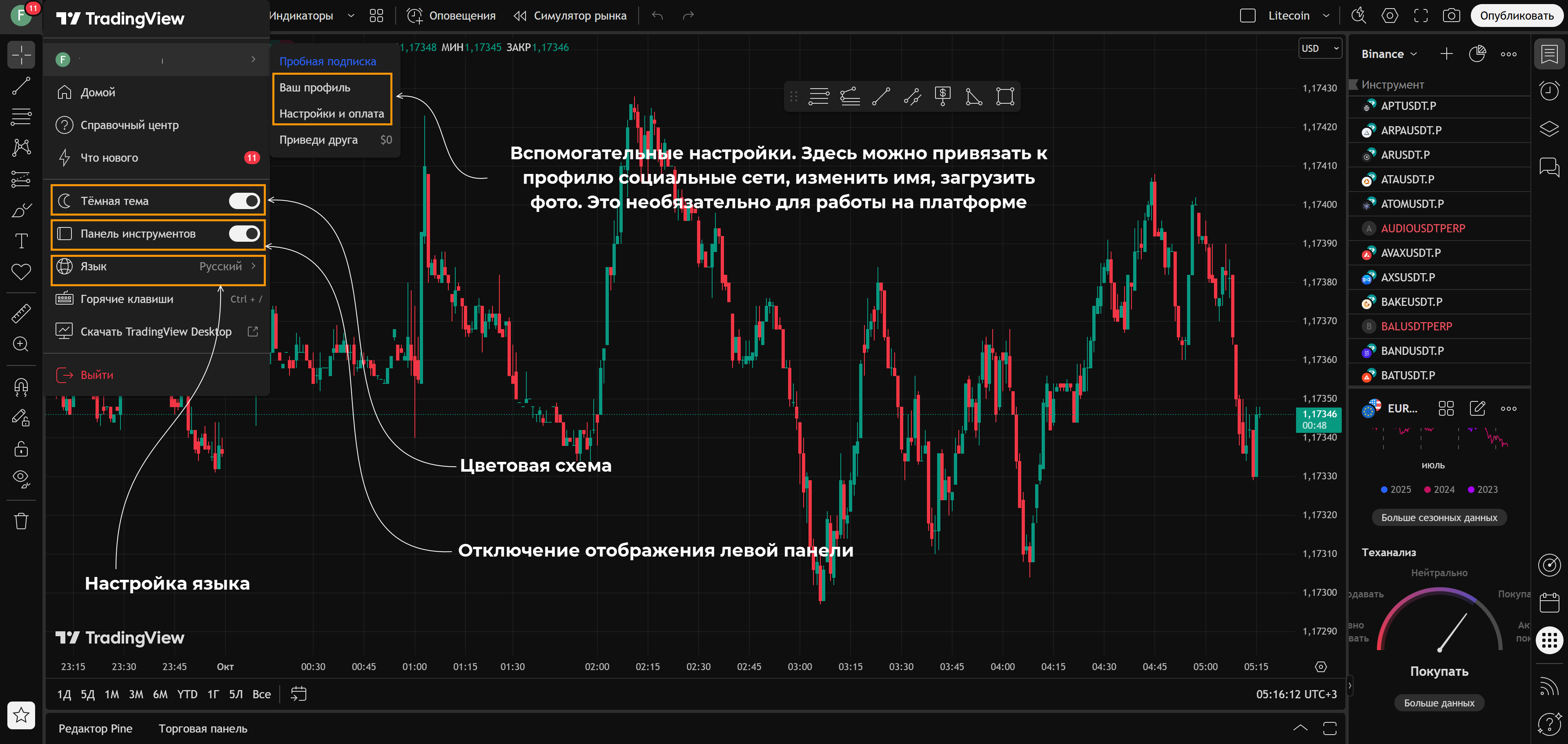 Настройки профиля в TradingView