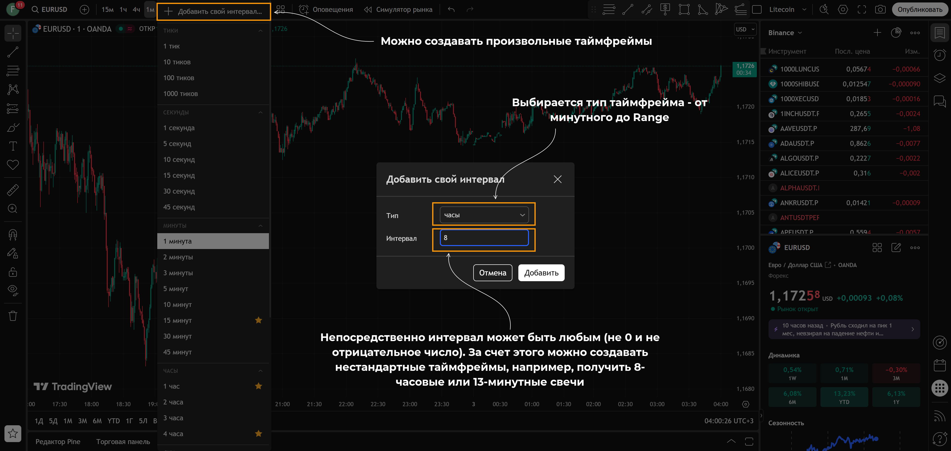 • Задайте нужный таймфрейм.