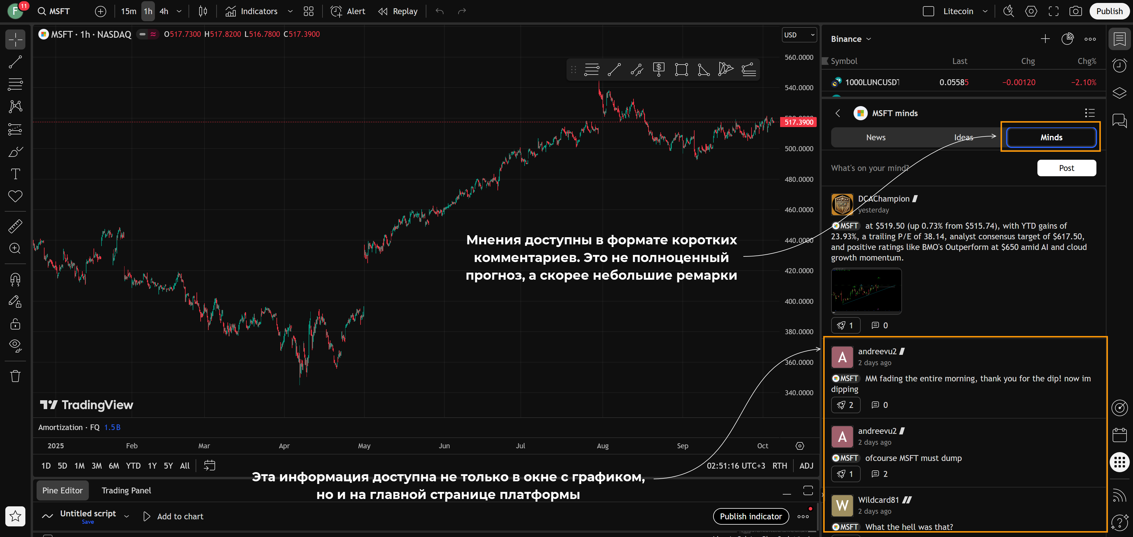 • Аналитическая составляющая. Трейдеры могут обмениваться торговыми идеями, делиться разметкой графика, давать средне-/долгосрочные прогнозы.