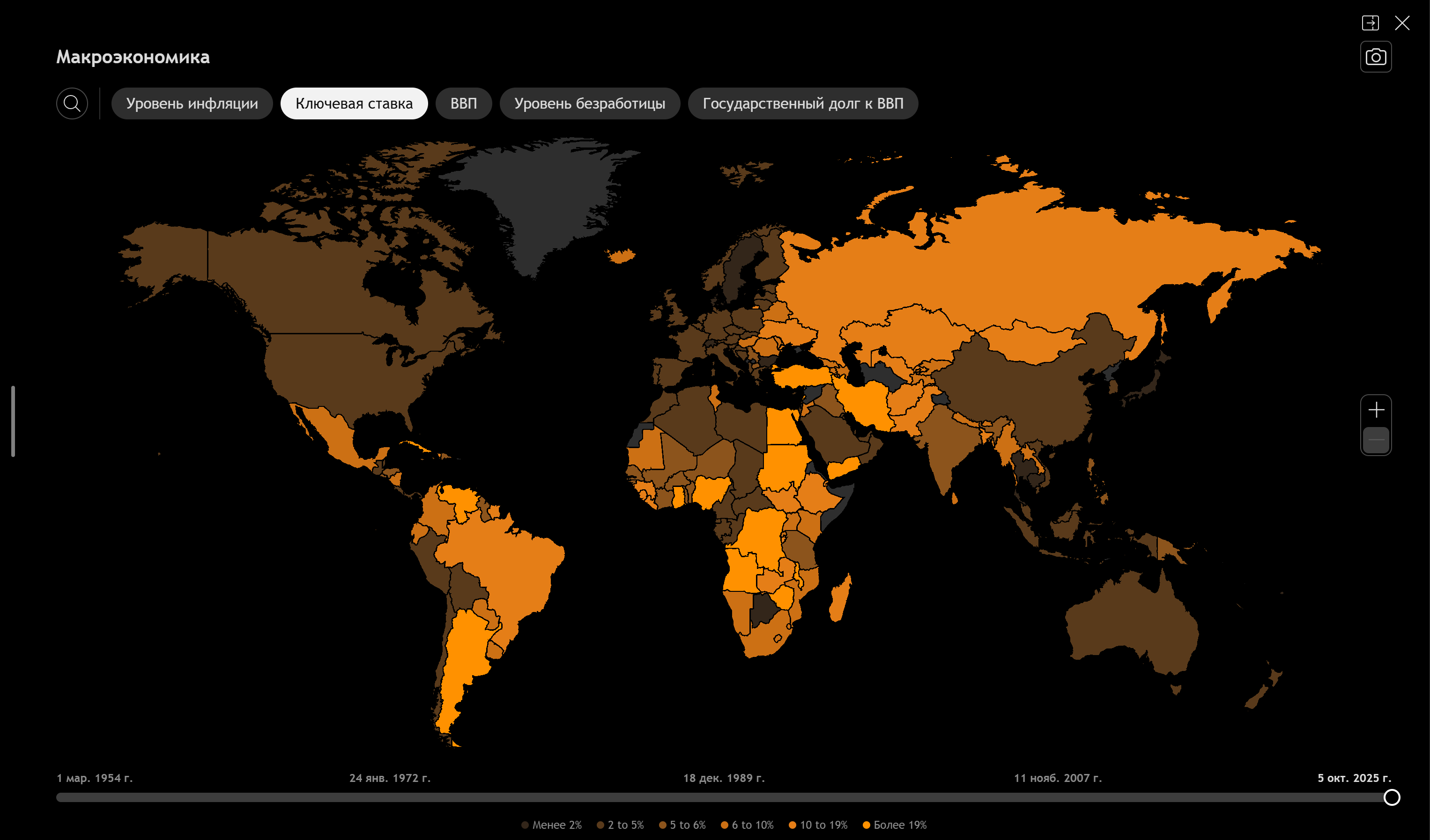 • В левом нижнем углу можно выбрать объем истории, отображающийся на графике. Также можно перейти к конкретной дате.