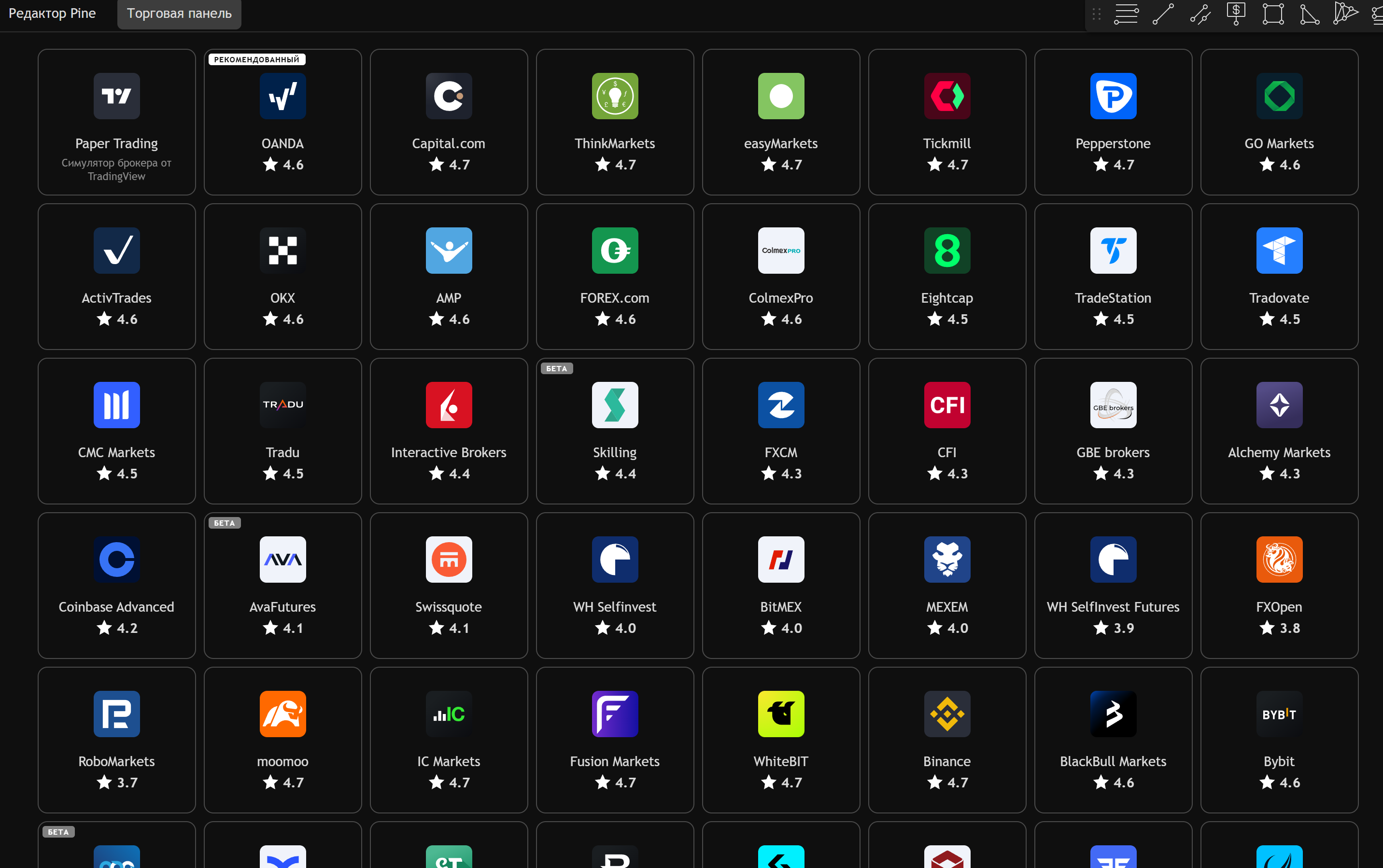 • Интеграция с брокерами: прямой трейдинг с чартов через партнеров.