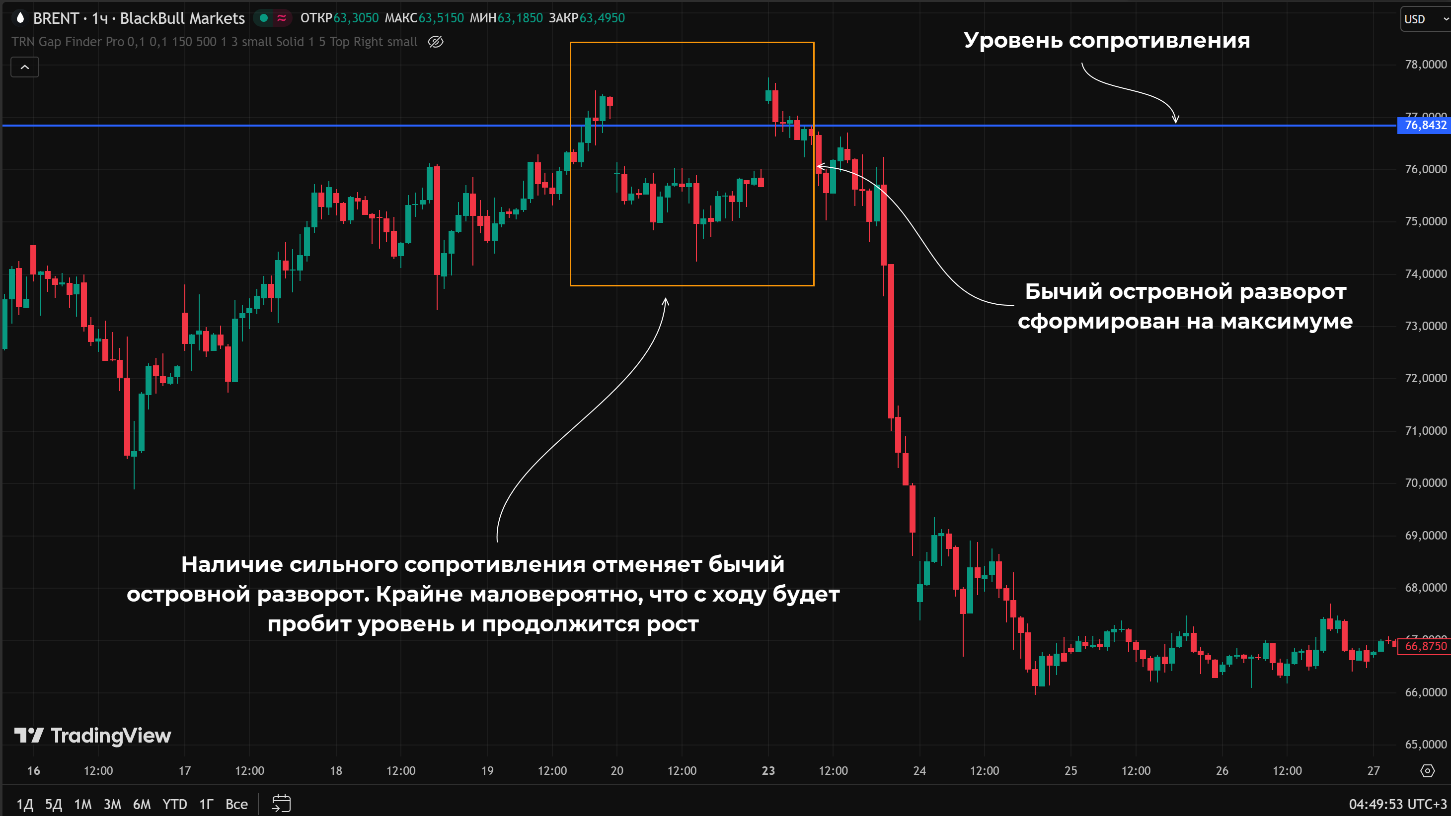 Пример ложного островного разворота