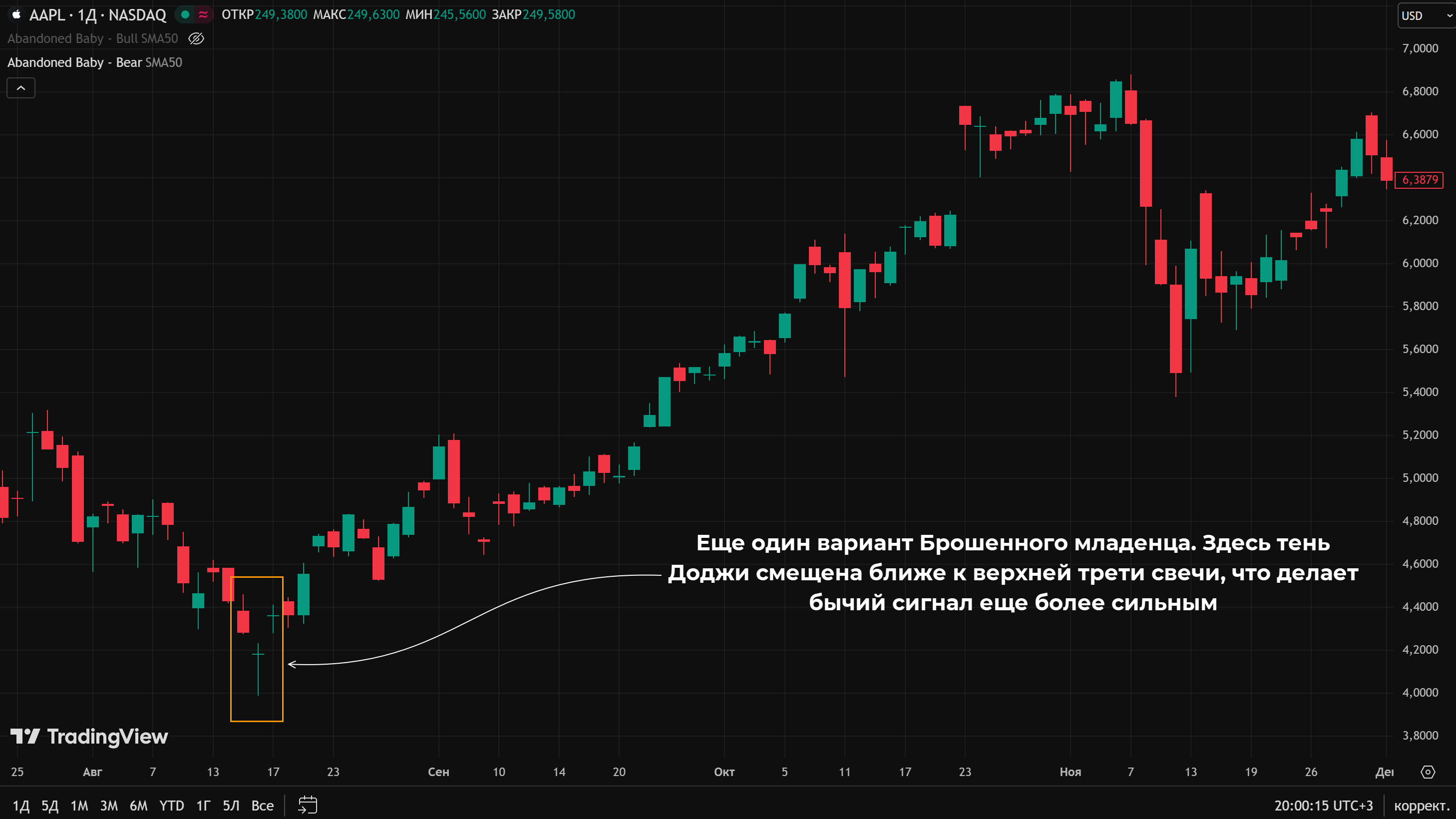 На платформе TradingView есть специальные индикаторы для поиска бычьей и медвежьей версии Брошенного младенца. Так как паттерн редкий его используют как дополнение к основной ТС.