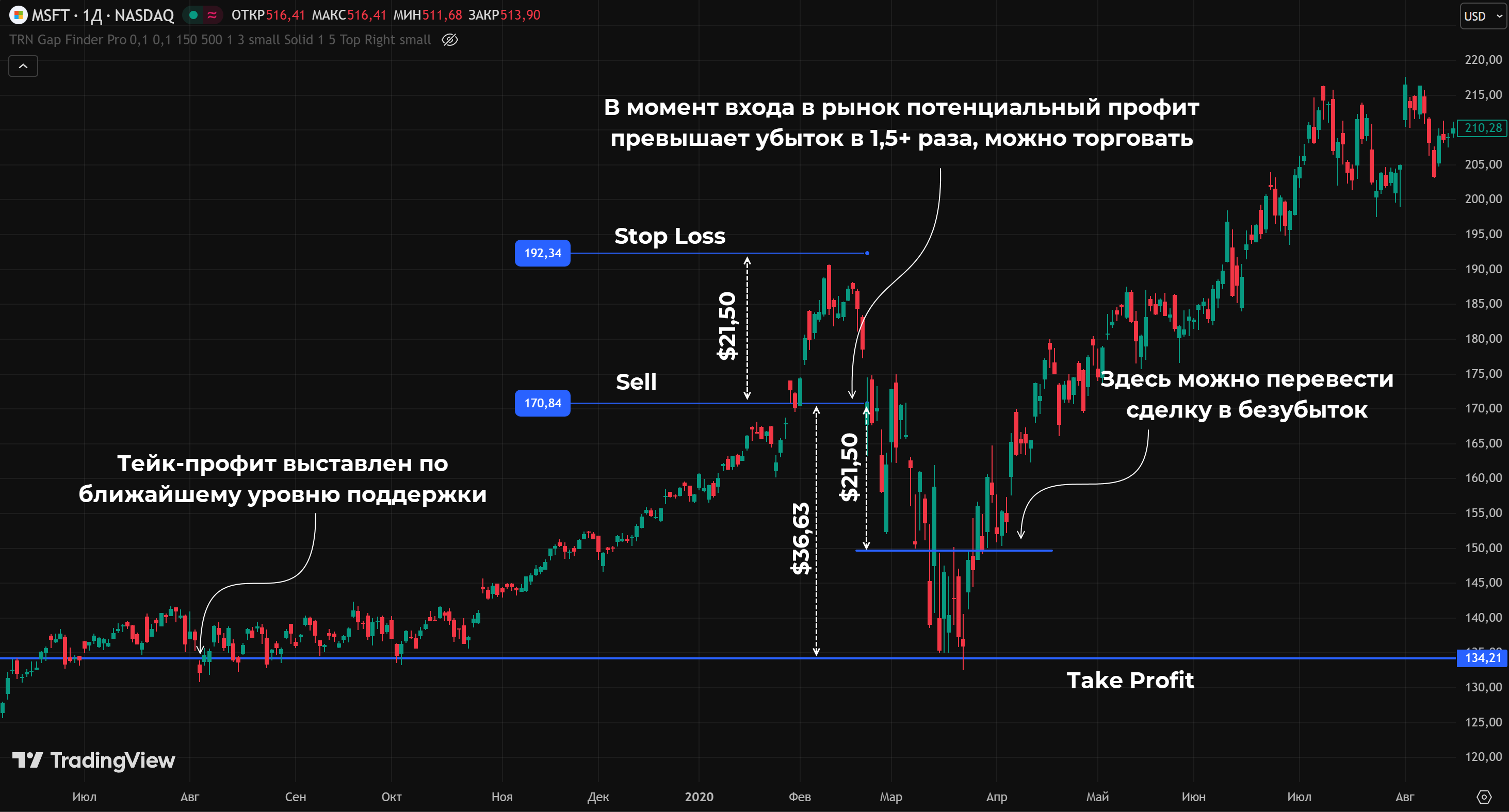 Есть смысл переводить сделку в безубыток, если график прошел в направлении ТР расстояние, равное стопу.