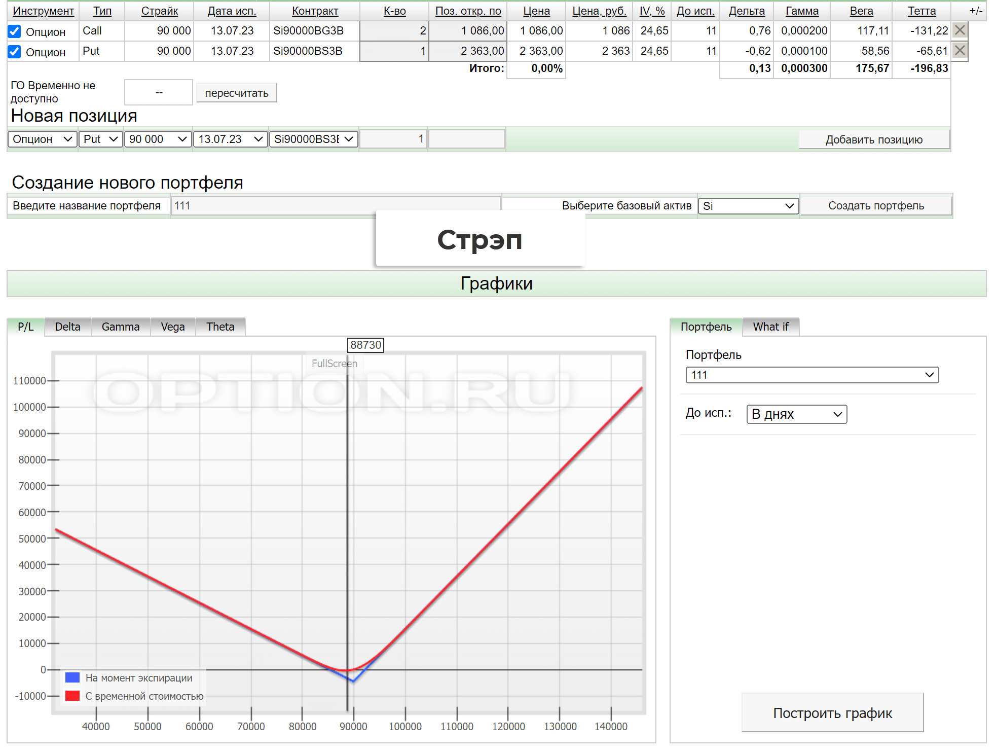 - Стрэп. Нужно купить 2 Колла и 1 Пут с одинаковым страйком и одной датой экспирации. Стратегия применяется в ситуациях, когда есть повышенная вероятность роста актива.