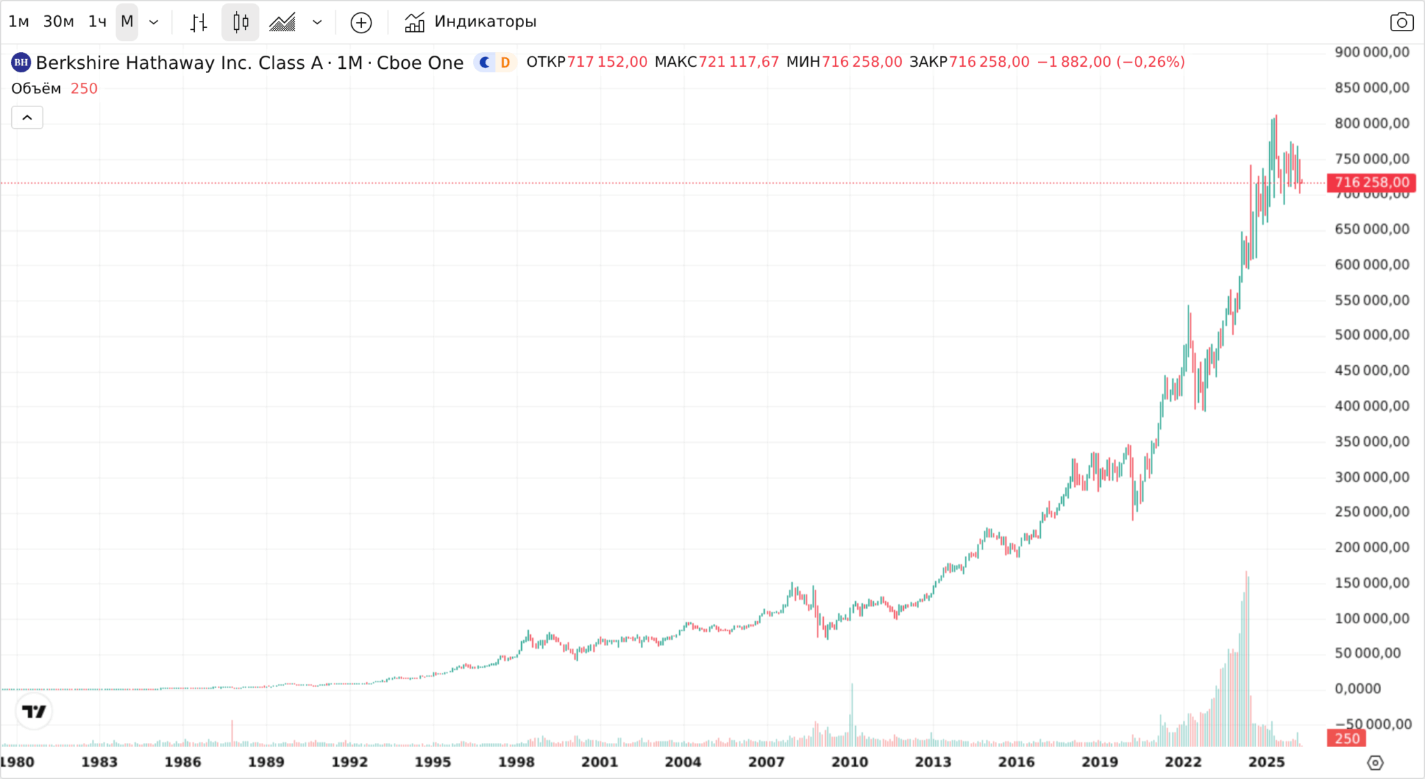 Самый показательный пример — история с Уорреном Баффетом и его партнером Чарли Мангером. За 60 лет инвестиционная компания Баффета Berkshire Hathaway показала среднегодовую доходность около 20% и выросла в цене более чем в 55 000 раз! Во многом за счет реинвестирования прибыли.