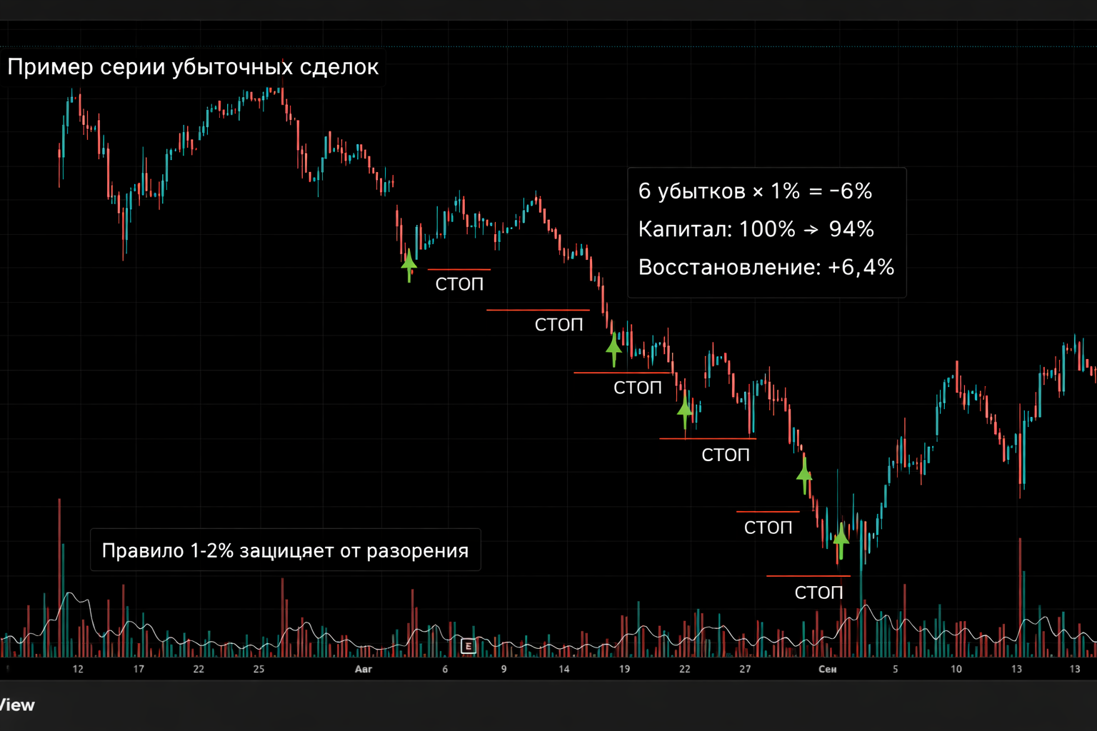 Представьте себе профессионального игрока в покер. Он никогда не ставит все фишки на одну руку, какой бы сильной она ни казалась. Точно так же опытный трейдер понимает: даже самая «верная» сделка может пойти против него из-за неожиданных новостей, технического сбоя или манипуляций крупных игроков. Правило 1–2% работает как финансовая подушка безопасности — оно гарантирует, что серия неудачных сделок не уничтожит ваш торговый капитал.