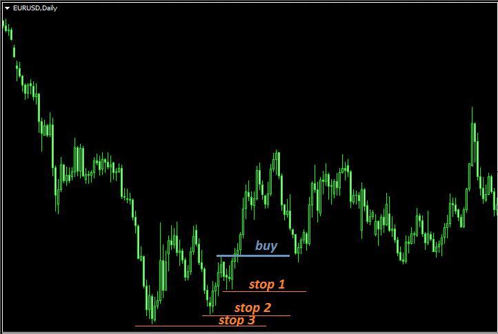 1. На основе уровней поддержки/сопротивления. Стоп размещается чуть ниже уровня поддержки (для длинных позиций) или выше уровня сопротивления (для коротких). Логика: если уровень пробит, торговая идея инвалидирована.