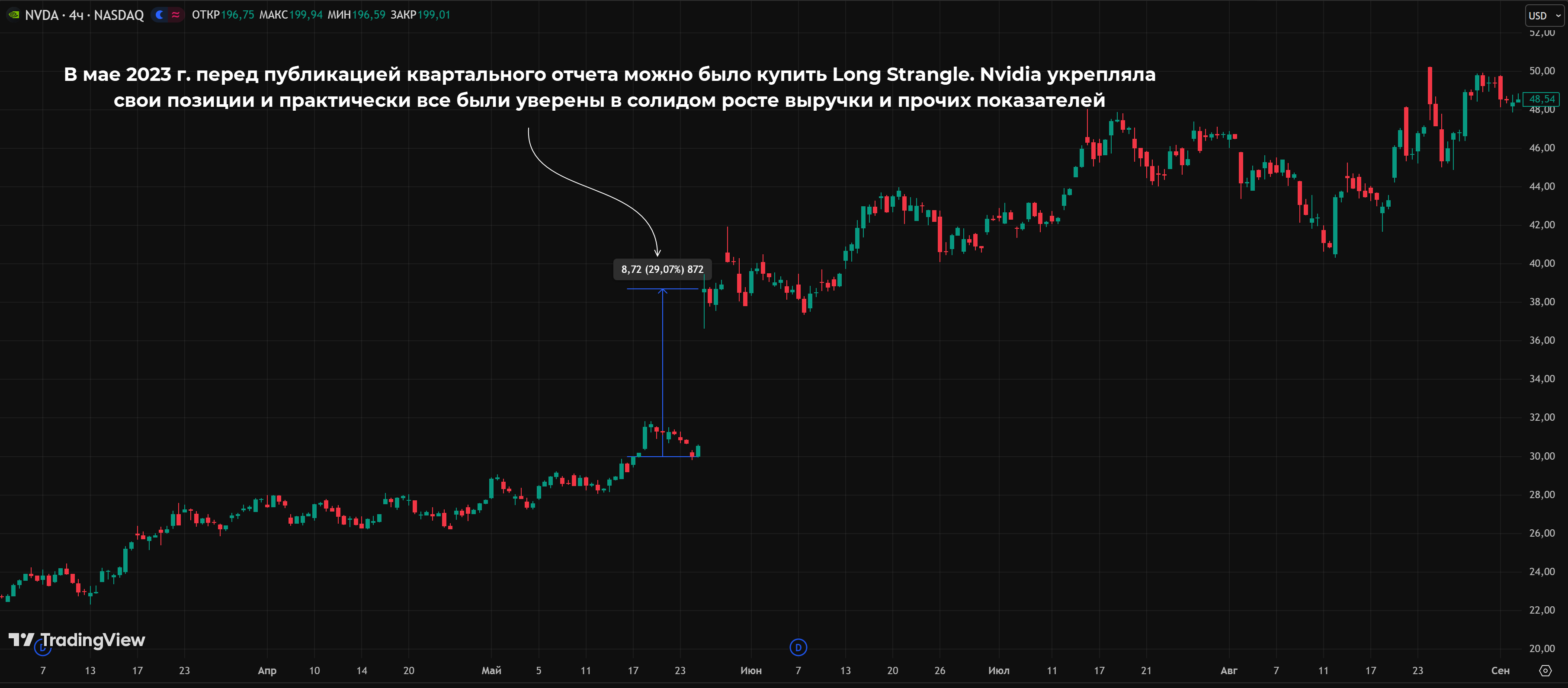 Пример построения длинного стрэнгла на акциях компании Nvidia