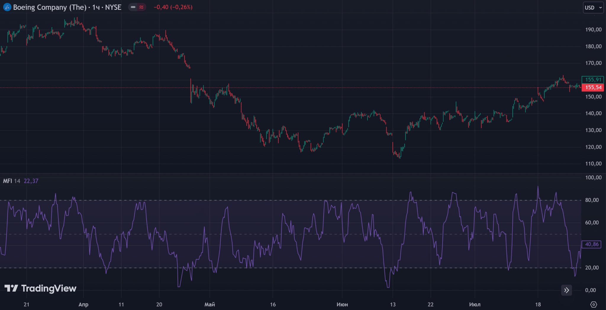 - MFI – Money Flow Index. По логике работы напоминает индекс относительной силы, но с учетом объемов. В расчетах MFI оценивает денежные потоки и определяет уходят деньги из актива или приходят в него. Внешне индикатор выглядит как обычный осциллятор, у него есть зоны перепроданности, на нем можно искать дивергенции/конвергенции.