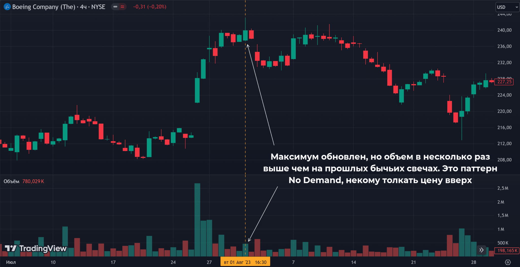В анализе все сводится к оценке динамики изменения объемов, также учитывается конфигурация свечей, поведение графика у значимых уровней.
