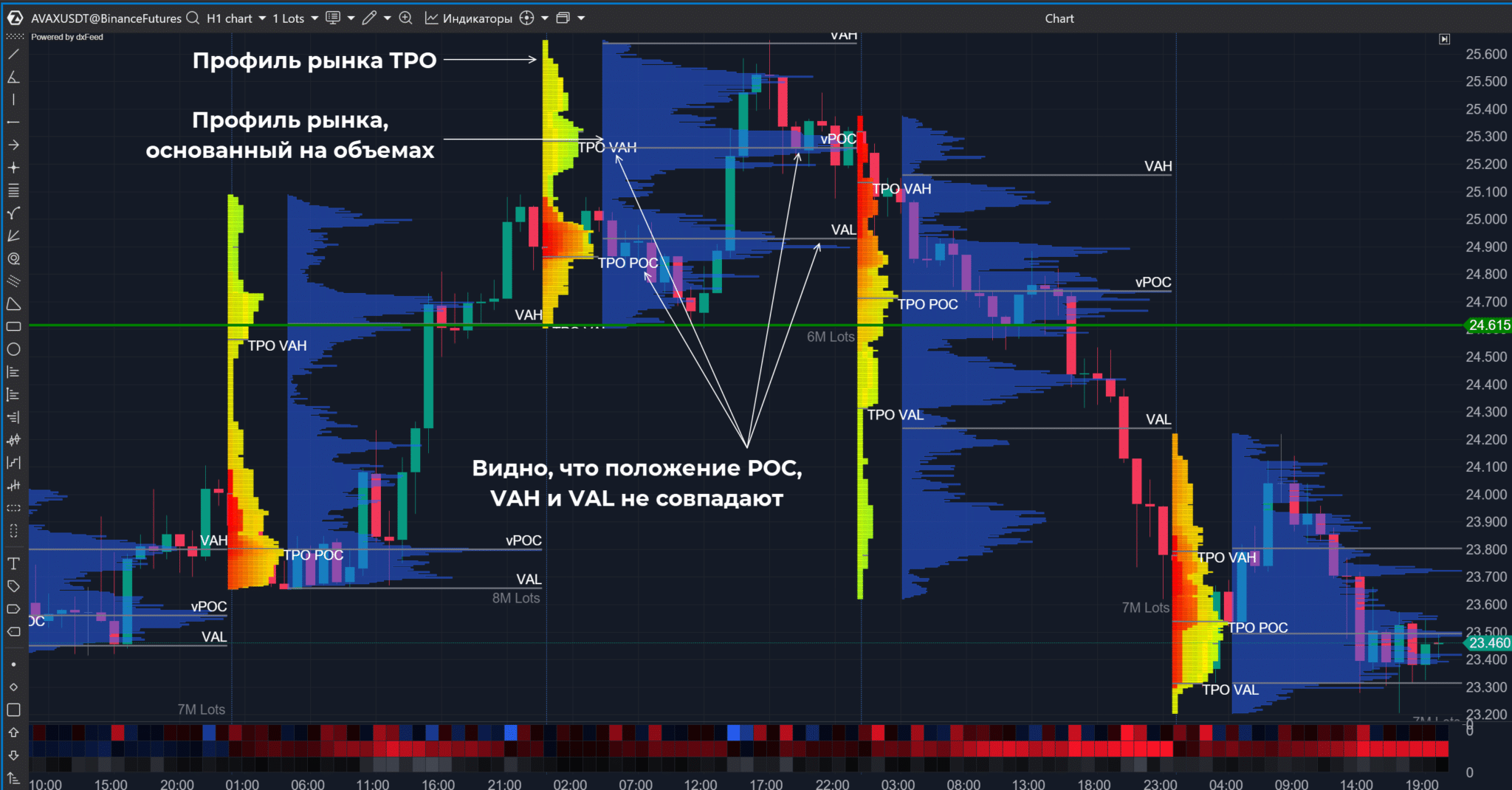 Чаще всего в торговле на объемах используются профили рынка, основанные на: