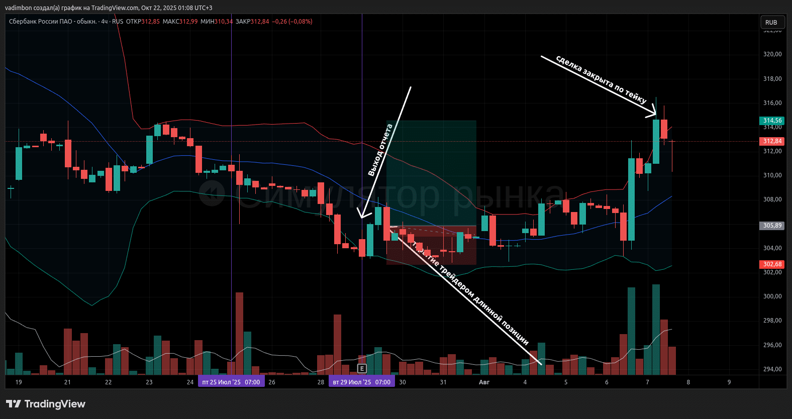 - Вариант В (для свинг-трейдера): закрыть существующие позиции по Сберу за день до отчёта, чтобы избежать ненужного риска. Вернуться к торговле через 2–3 дня, когда волатильность спадёт и картина прояснится.