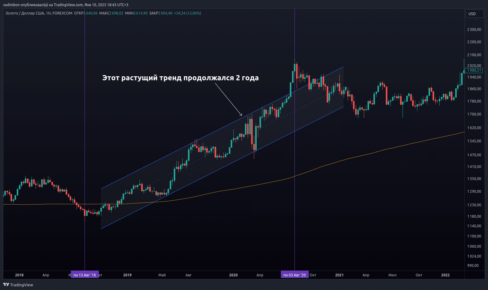 Ценовое движение по золоту проходит сильные уровни и часто формирует затяжные тренды, что позволяет строить прибыльные стратегии следования за трендом.